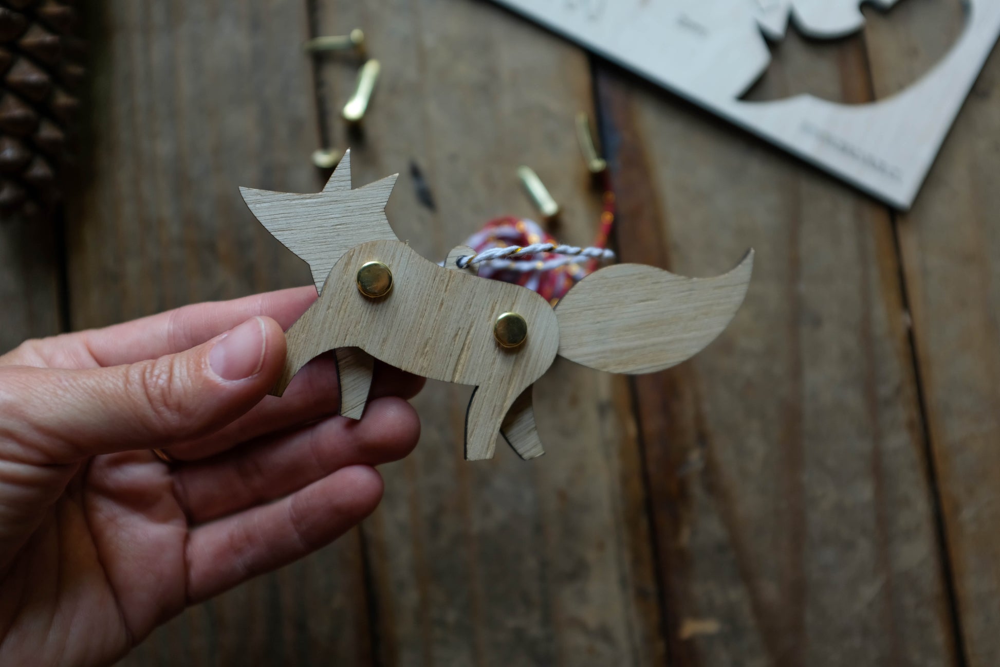Crea tu propia decoración navideña con estas piezas de madera listas para montar. Solo debes unir las figuras con los broches dorados, colgar el hilo… ¡y listo! Si quieres, también puedes pintarlas y darles tu toque personal.